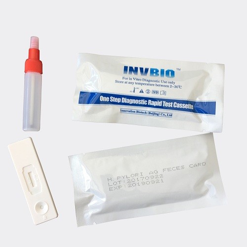 H.pylori Antigen Test Cassette detection in stool is a rapid, non invasive, easy to perform test that can be used to detect active infection, monitor effectiveness during therapy and to confirm cure after antibiotic use. The ease to collect the specimen, especially in children, in whom endoscopy would be difficult and the non requirement of specially trained staff to collect and perform the test adds to the tests advantage.